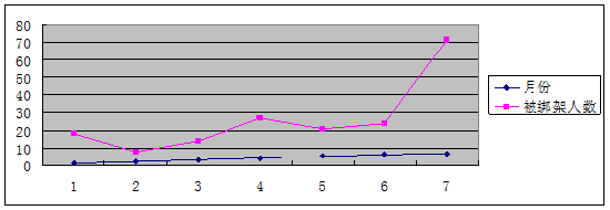 表1:2014年1月至7月份四川省被绑架法轮功学员人数