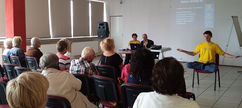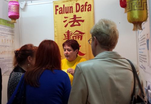 图1-2:波兰法轮功学员在健康博览会上做法轮大法专题介绍