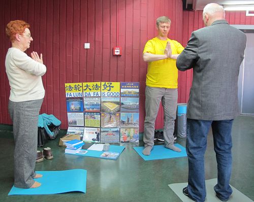 六十六岁的HELENA POTOK女士三年前在博览会上学习过法轮功,但在此后她又学习了很多各种各样的其它功法,回家后她和女儿一种功法一种功法的练习,经过三年的比较,她们得出一个结论:法轮功是最好的。她的女儿对她说:“妈妈,快去博览会上找法轮功,不要再耽搁了,这次学习功法要一次性全学会。我是去不了,所以您一定要全学会,另外要买那本书,就是蓝色封面的,千万别忘了。” HELENA POTOK女士在春季健康博览上激动地告诉法轮功学员这些话,然后非常认真地和法轮功学员开始学炼功法,为确保每个动作都做正确,她要求法轮功学员和她做一对一的教功练习直至她全部学会。走前她非常高兴地买了一本《转法轮》,并在反活摘器官的征签簿上签下自己的名字。