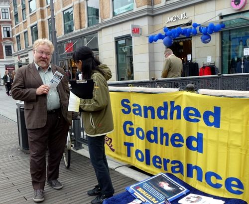 丹麦的第二大城市奥尔胡斯市于每年的夏秋之交举办文化周活动。法轮功学员今年是第十四次参加文化周活动,他们拉开写着“法轮大法好”、“真善忍”的中文和丹麦文横幅,向民众讲真相。