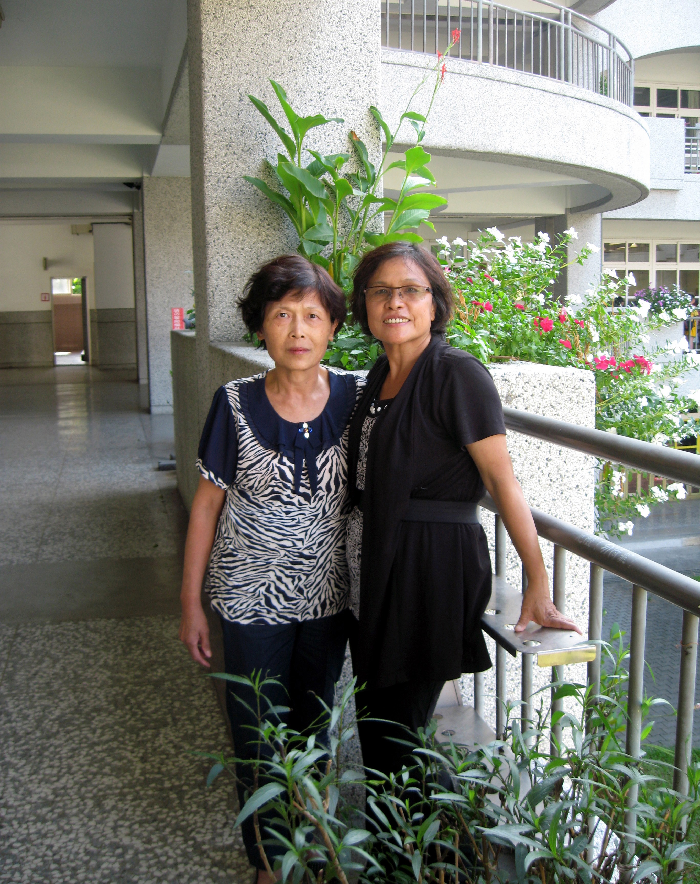 彩铭(左)和曾照顾她的看护赖女士开心的合影。