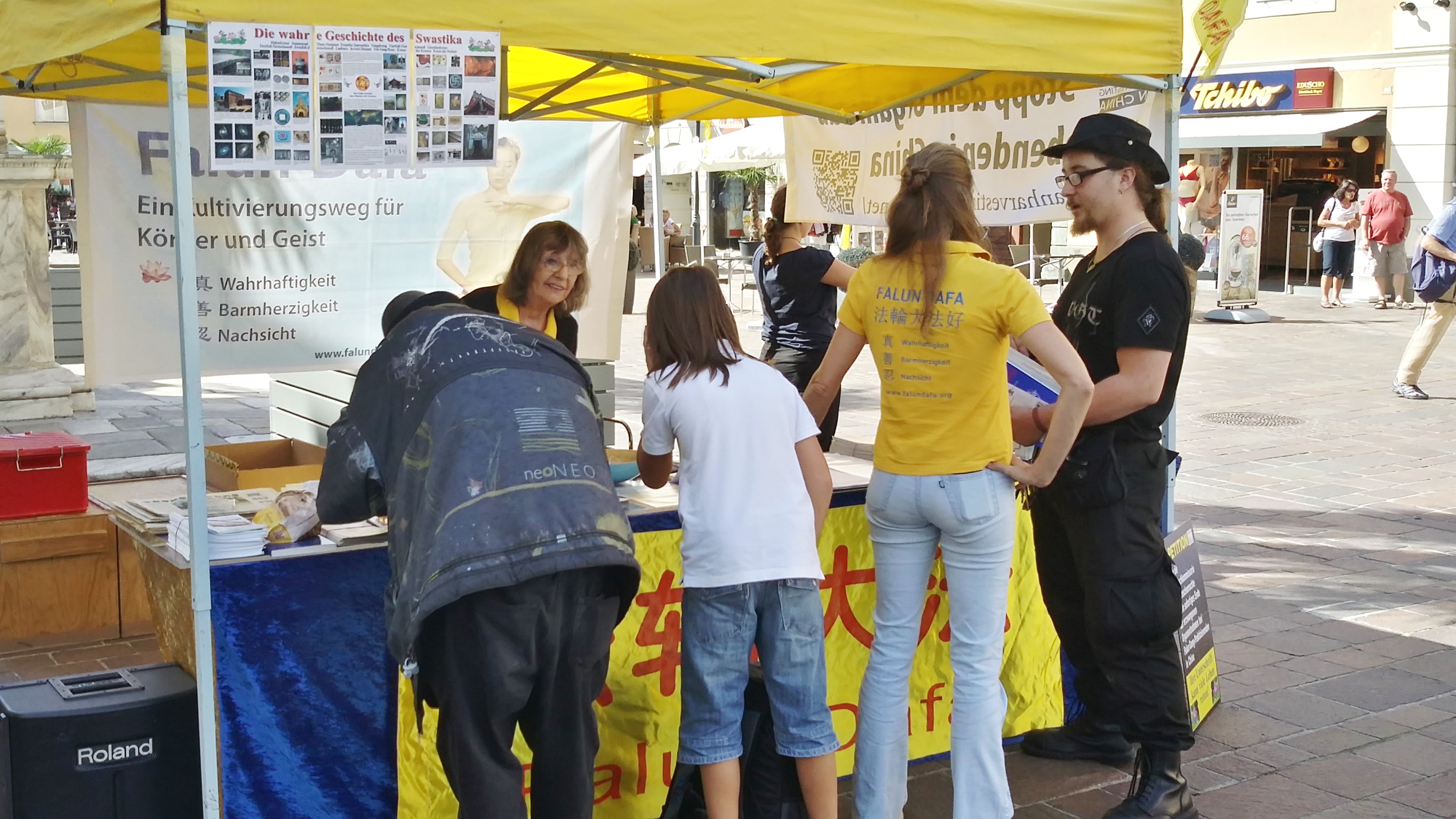 当日的活动在位于克拉根福市中心的步行街广场(Alten Platz)举行。法轮功学员在活动中,不停地用麦克风讲解中共残酷迫害法轮功的真相,很多过往民众被中共活摘器官的反人类暴行所震惊和愤慨。