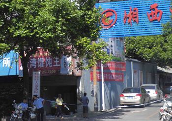 在去法院的路口处,交警在此拉起了封锁线(见照片),对过往车辆实施交通管制,阻止所谓“可疑”车辆前行。沿途布有便衣,不时还有610、公安国保人员游动。怀化市610杨涛、鹤城区610杨军、杨华等人专门守候在法院大门口,对前去旁听的民众进行拦截,还有多名防暴警察(鹤城特警)手持警械在此把守。中方县610雷建华、张××(女性,30多岁,也到现场对法轮功学员摄像),铁路国保、610殷果辉等人也都到场。