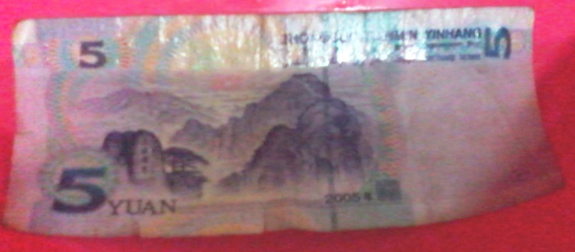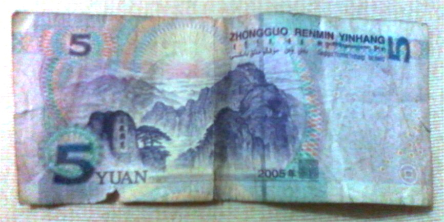下面这三张图,是我用手机拍的那张五元纸币旧貌焕新颜的过程。
