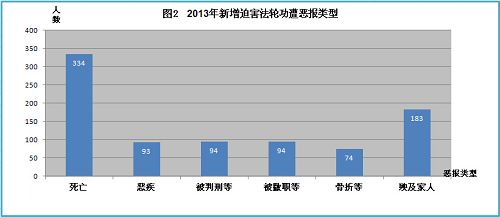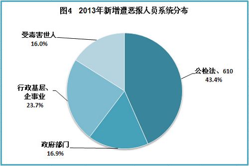 2013年新增遭恶报人员的系统分布如表3和图4所示。
