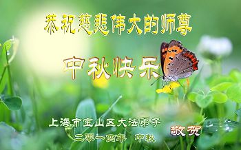 上海大法弟子恭祝慈悲伟大的师尊中秋快乐!上海大法弟子想念您!上海三个学法小组全体大法弟子恭贺师尊中秋快乐!上海南汇大法弟子恭祝师尊中秋快乐!