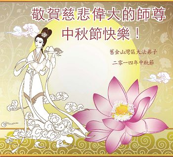 美国加州旧金山湾区大法弟子恭贺慈悲伟大的师尊中秋节快乐!美国密苏里州全体大法弟子恭祝师父中秋快乐!美国洛杉矶大法弟子恭祝师尊中秋快乐!