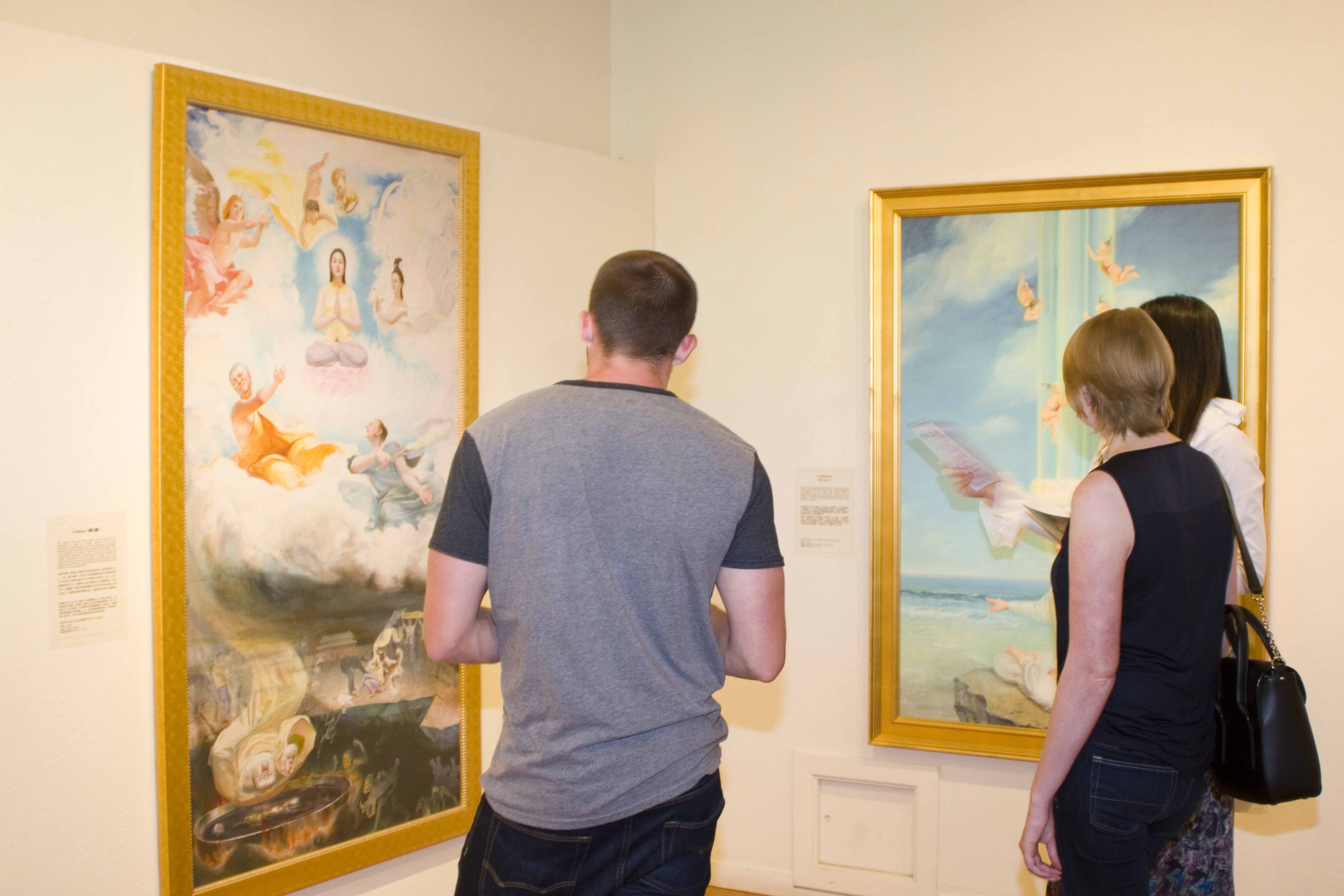 图4:观众在观赏真善忍美展