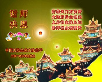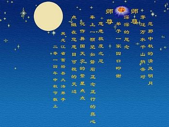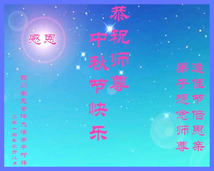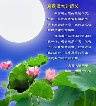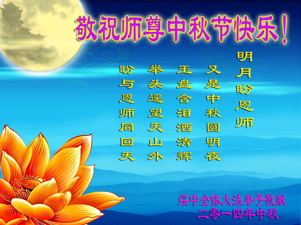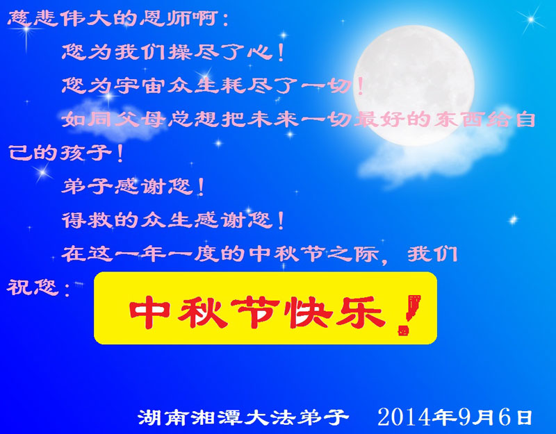 <英文版: http://en.minghui.org/html/articles/2014/9/9/3035.html>明真相世人恭祝李洪志师父中秋快乐
