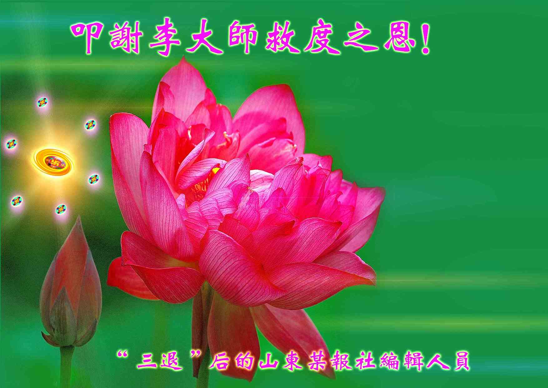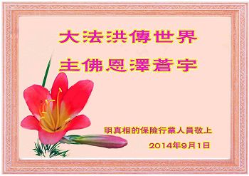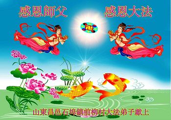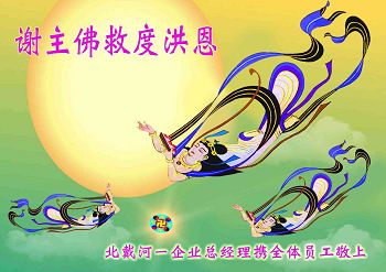 感谢师父把我从地狱中捞起,用无边大法洗净我的心灵,把我从迷途中唤醒,引我走上了返本归真的通天大道。如果我不是修炼了大法,根本就没有我的今天。我也真心希望世人能早日明真相、识正邪、破谎言、明善恶,也能享受到大法的美好。