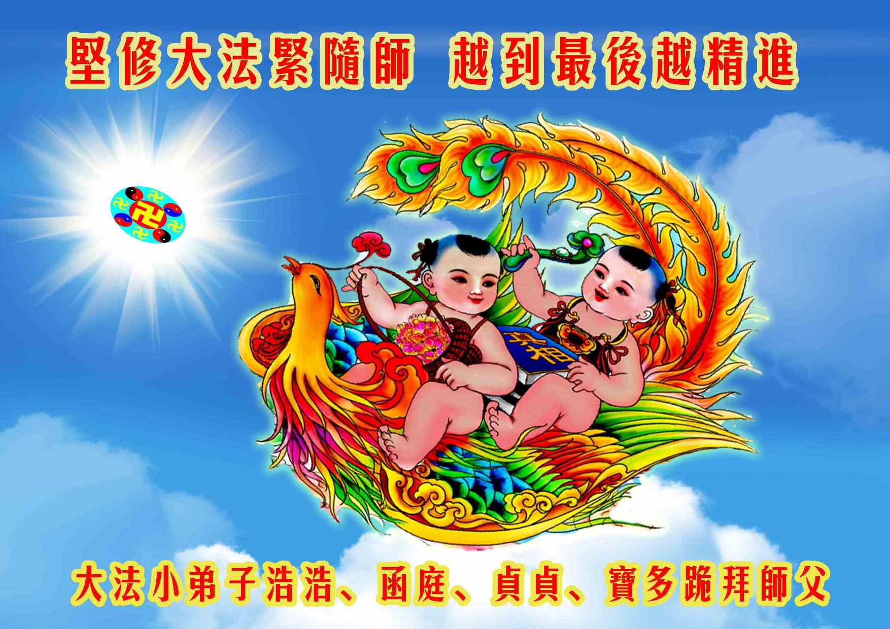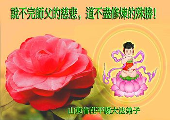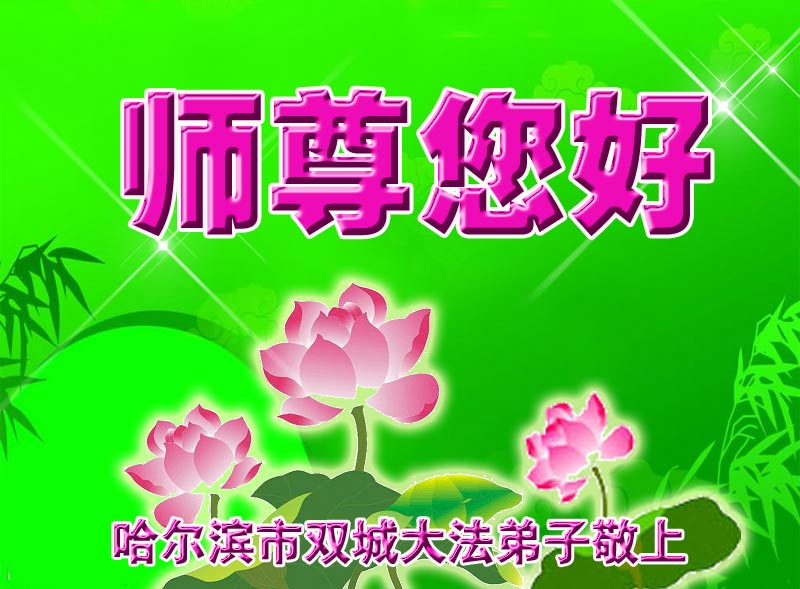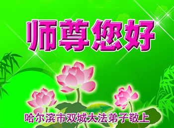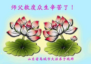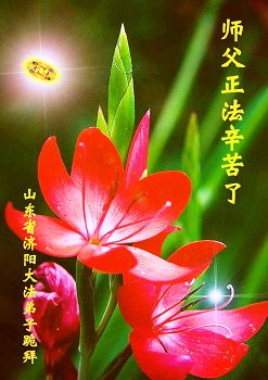 师尊您好:我们大法弟子仰沐师恩,一定做到时时修心性,努力救众生,多学法,勤炼功,跟着师父圆满回家!