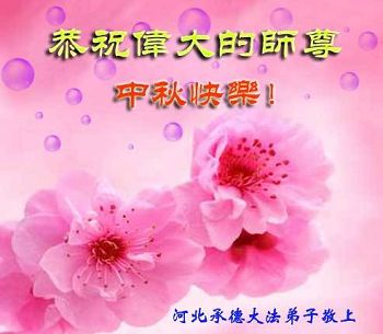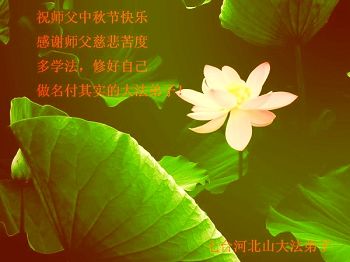 我是廊坊的新弟子,感恩您的慈悲救度,成为大法弟子是我的荣幸!您让我明白了什么是真正的修炼。祝您中秋节快乐! 感恩跪拜师父!