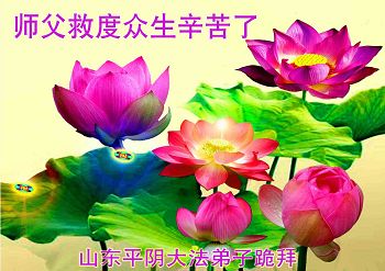 我们万分感谢李大师对我们的慈悲救度!十几年来,众多的世人通过大法弟子坚持不懈的努力明白了真相,退出了中共邪党;有的公检法人员明白真相后停止了对法轮功的迫害,利用自己的便利条件保护大法学员。
