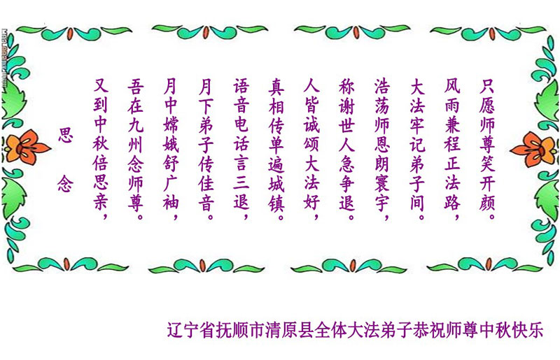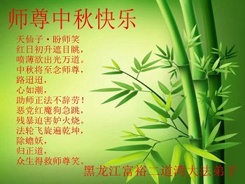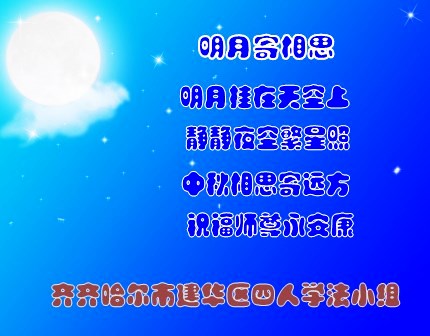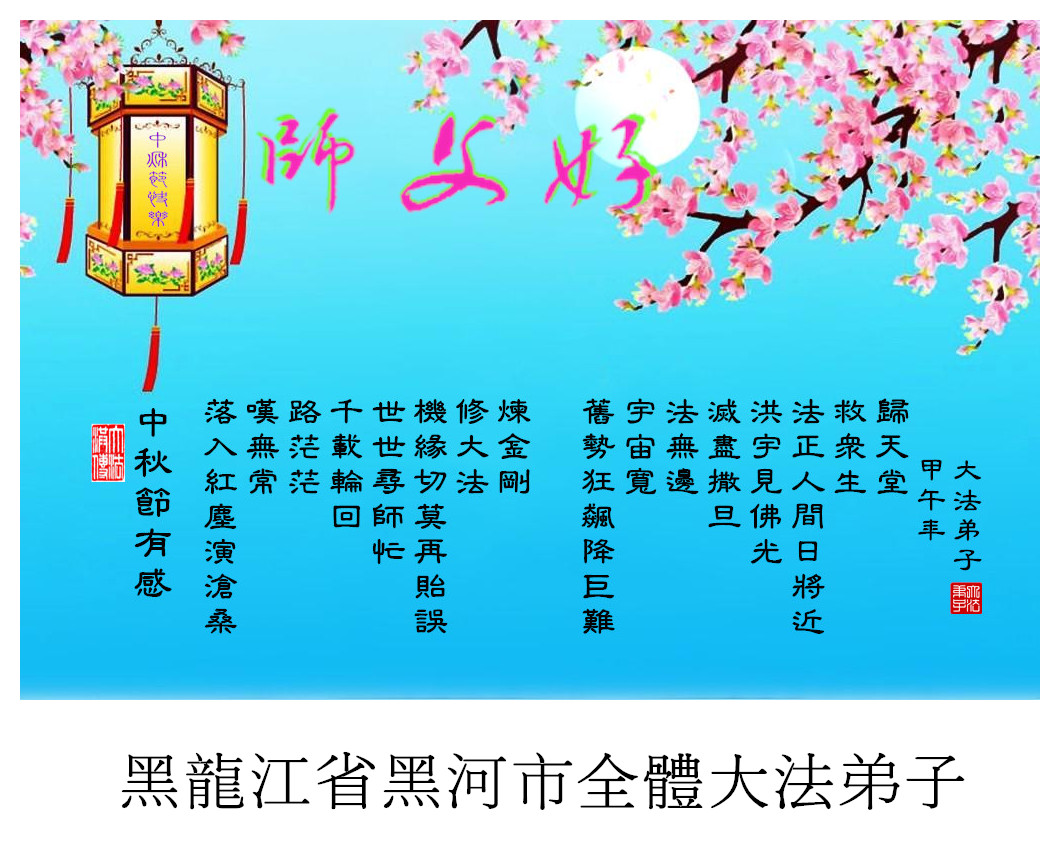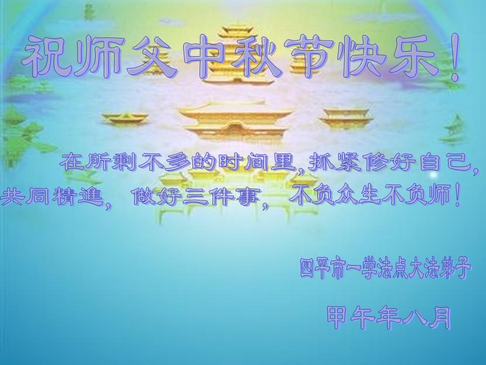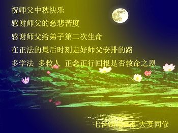 在正法的最后时刻,弟子一定走好师父给安排的路,努力做好三件事,跟师父回家!祝师父中秋节快乐!