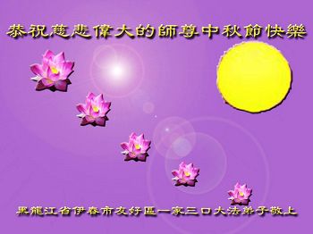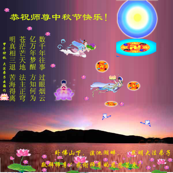中秋佳节到来之际,我们携亲朋好友以及明白大法真相的世人向伟大慈悲的李大师敬献诚挚的祝福,无限的感恩李大师慈悲救度,感恩法轮大法!
