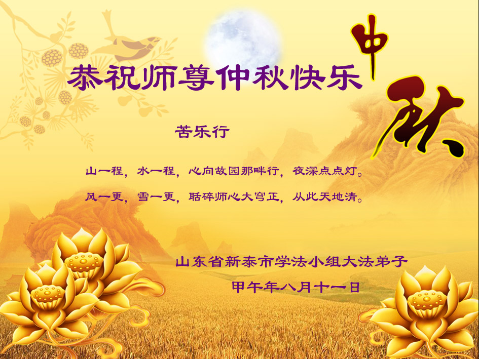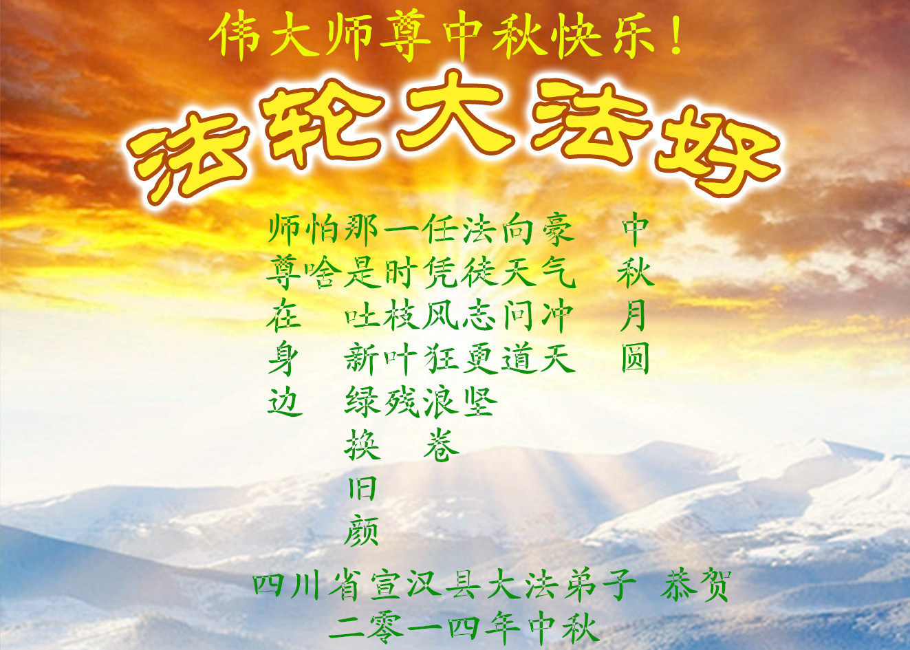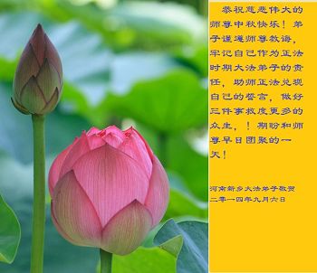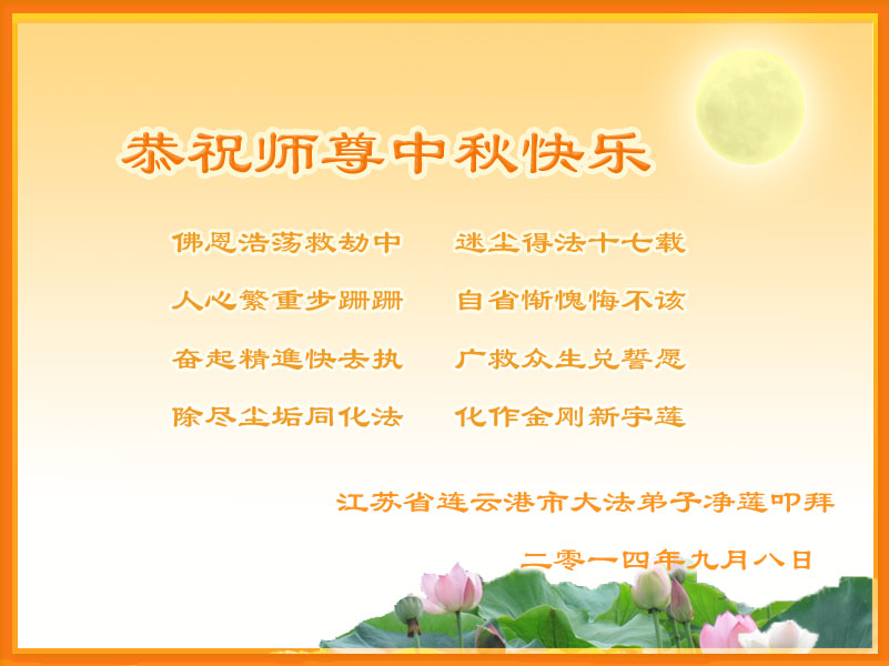<英文版: http://en.minghui.org/html/articles/2014/9/9/3151.html>新学员恭祝师尊中秋好