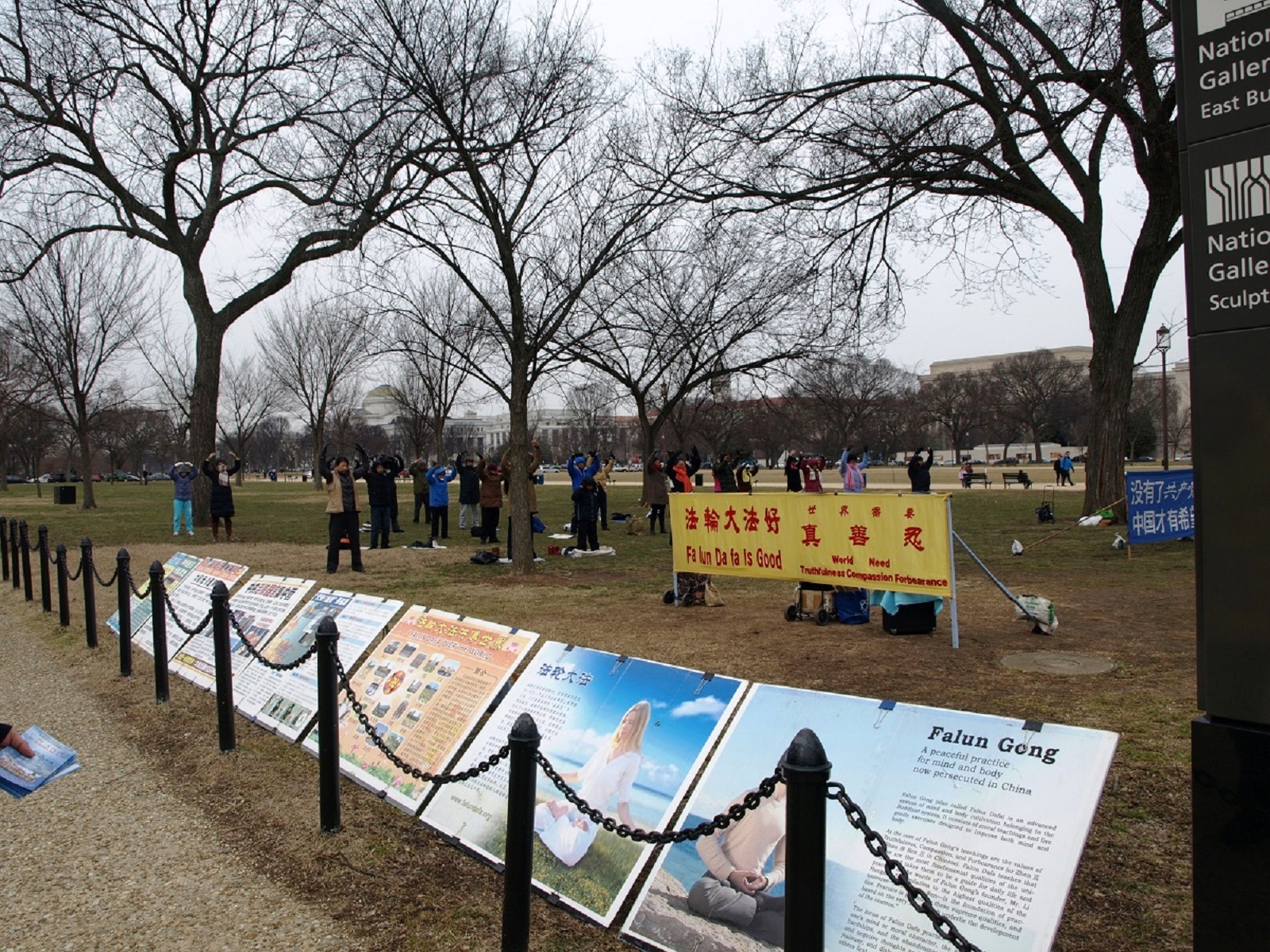 华盛顿DC法轮功学员在宇航馆马路的对面设立的真相点