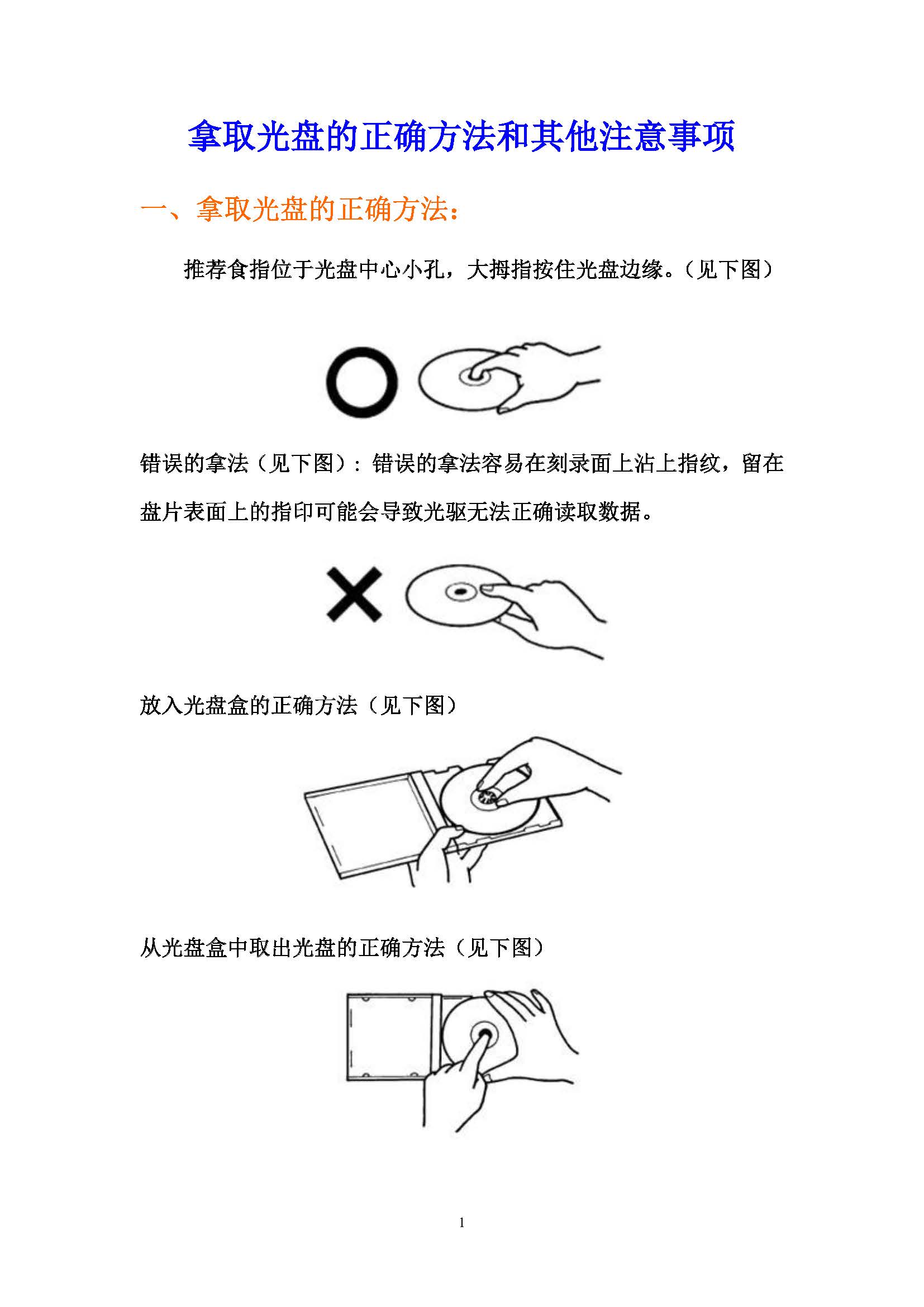 拿取光盘的正确方法、光盘保存和使用的其它注意事项