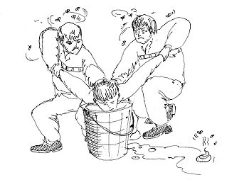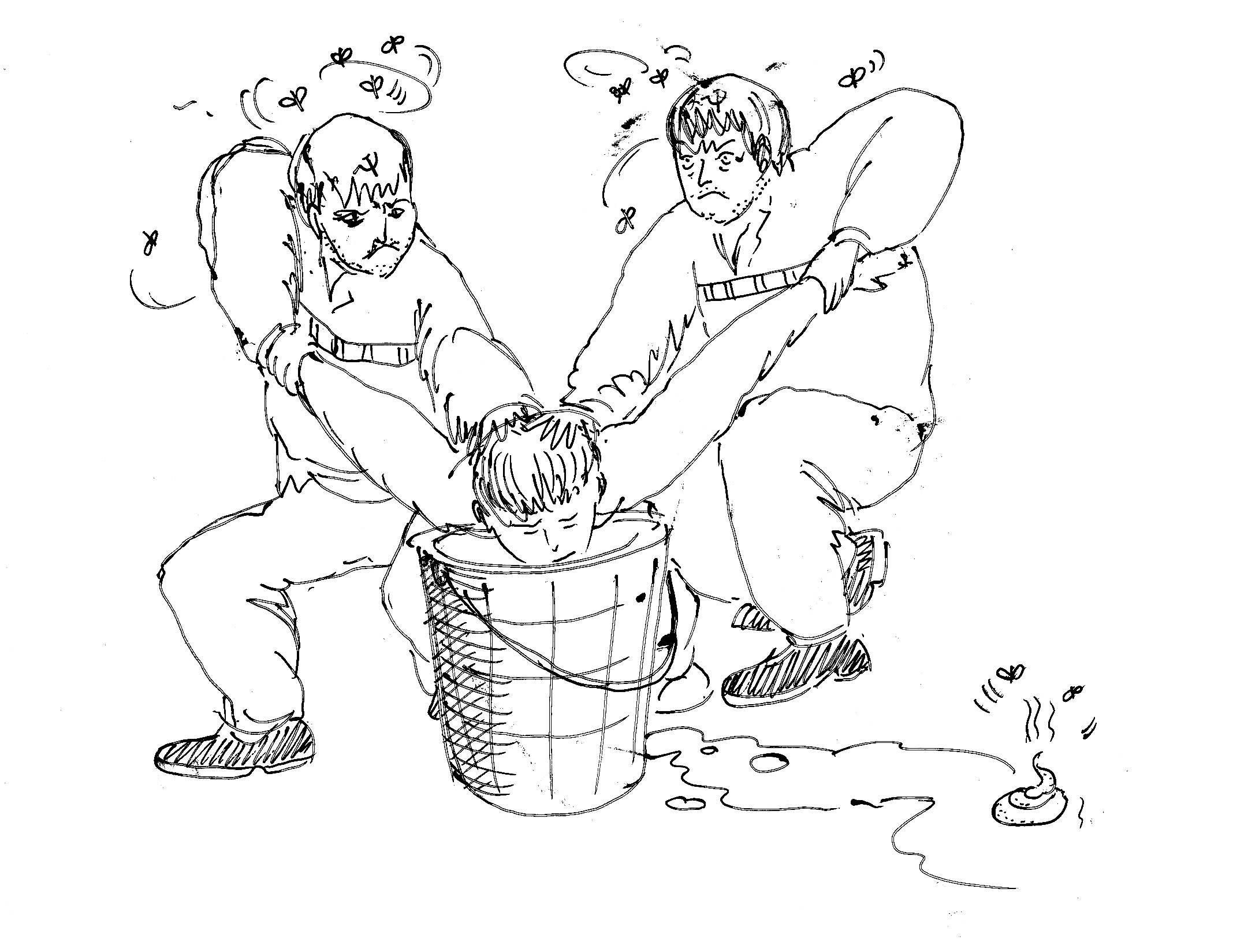 对绝食者绑床,七天到无限期。不进食就不放下来。双手、双脚用布条绑住,胸部绑上布条,有时故意勒紧导致胸口憋闷、呼吸困难。下体套上导尿器具,强行灌食。