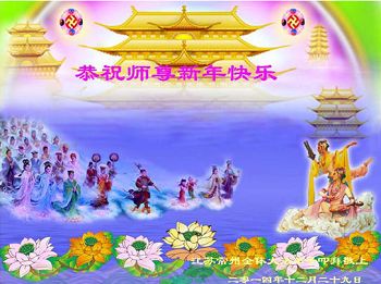 慈悲伟大的师父:您好!北京师范大学大法弟子跪拜师尊向师父拜贺新年!2015年的到来,历史的大幕又将拉开新的乐章。能成为主佛的弟子,能肩负助师的重担,能成为这场历史大戏的主角,是我们生命永远的荣耀。作为中国教育系统的高校教师,我们面对着特殊的师生群体,如何在高知群体中破除思想禁锢,救度更多的人,唤醒他们的本性,如何去掉怕心,都对我们自身的修炼和救度众生提出了更高的要求。回首过往,还有太多的不足和遗憾,尚有太多的众生没有被救度,深感痛心疾首。19年修炼路,岁月更替,时空变幻,历经种种阻挠与考验,始终不改的是随师正法的心,感谢师父一路看护、加持与点化!感谢师父为宇宙所有众生的操劳与付出!我们北京师范大学大法弟子一定会坚定信心,修好自己,抓紧救人,放下名、利、情,请师父放心。全体北京师范大学大法弟子跪拜师父,再拜师父:师父新年好!