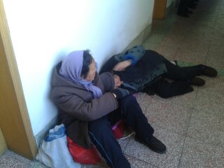 八十多岁的人了,站时间长了受不了,她们无奈的坐在冰凉的水泥地上。一会儿,有个警察故意从跟前路过把窗户偷偷推开了,三九严冬,寒风刺骨,把老人冻得直打颤,这才发现窗户被人推开了。冻得没办法,俩人就往里点儿靠门坐着,也希望有机会能进去见沈涛。