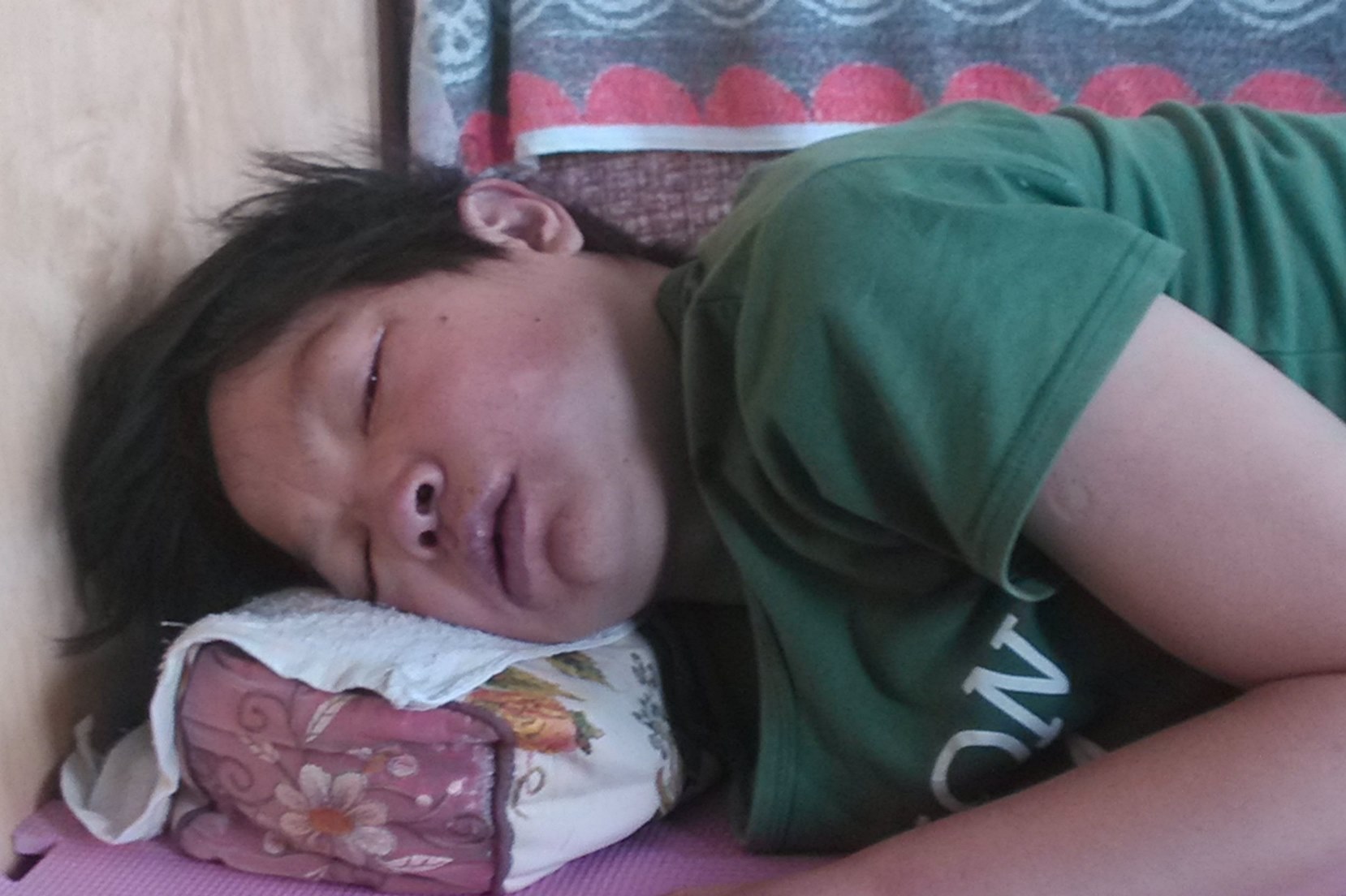 她无法正常走路,走路时四肢撑着,摇摆着,晃荡着,蹒跚着;因为她神志不清,又不能说话,耳朵也听不到声音,因此她每天都在呻吟着,哼着,甚至尖叫,惊吼,有时还大声的喊着,每天都从床上爬起睡下,又到厕所,没一刻安宁,有时还脱得一丝不挂的,大小便经常弄的衣服裤子满屋都是……天天这样,夜夜如此。