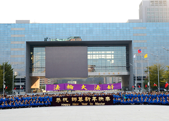 二零一五年元旦下午三点,台湾大台中地区法轮功学员在市政府大广场上炼功弘法。法轮功学员于炼功后齐向李洪志先生拜年,感颂师恩并恭祝师尊新年快乐。