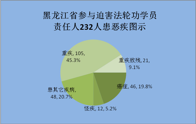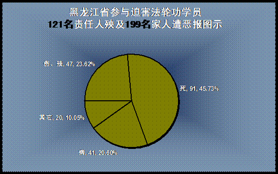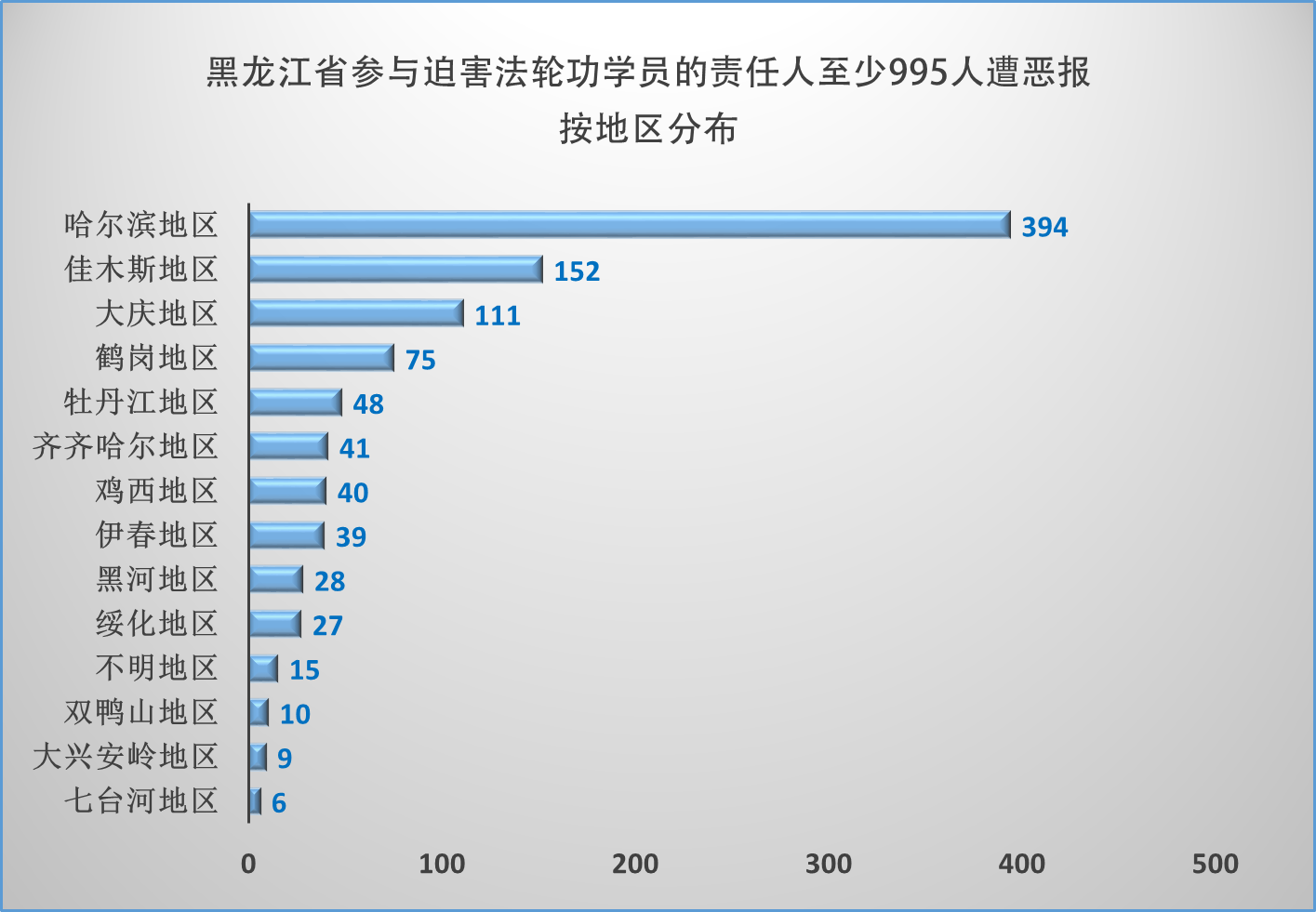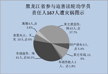 据明慧网报道不完全统计,黑龙江省参与迫害法轮功责任人中至少有995名遭到了不同方式的恶报。下面是按自遭恶报和殃及家人两大类进行的统计,希望读者能从做恶者可悲的下场中体味出个中滋味,警醒那些执迷不悟仍在继续迫害法轮功的江氏追随者。