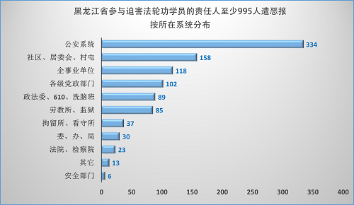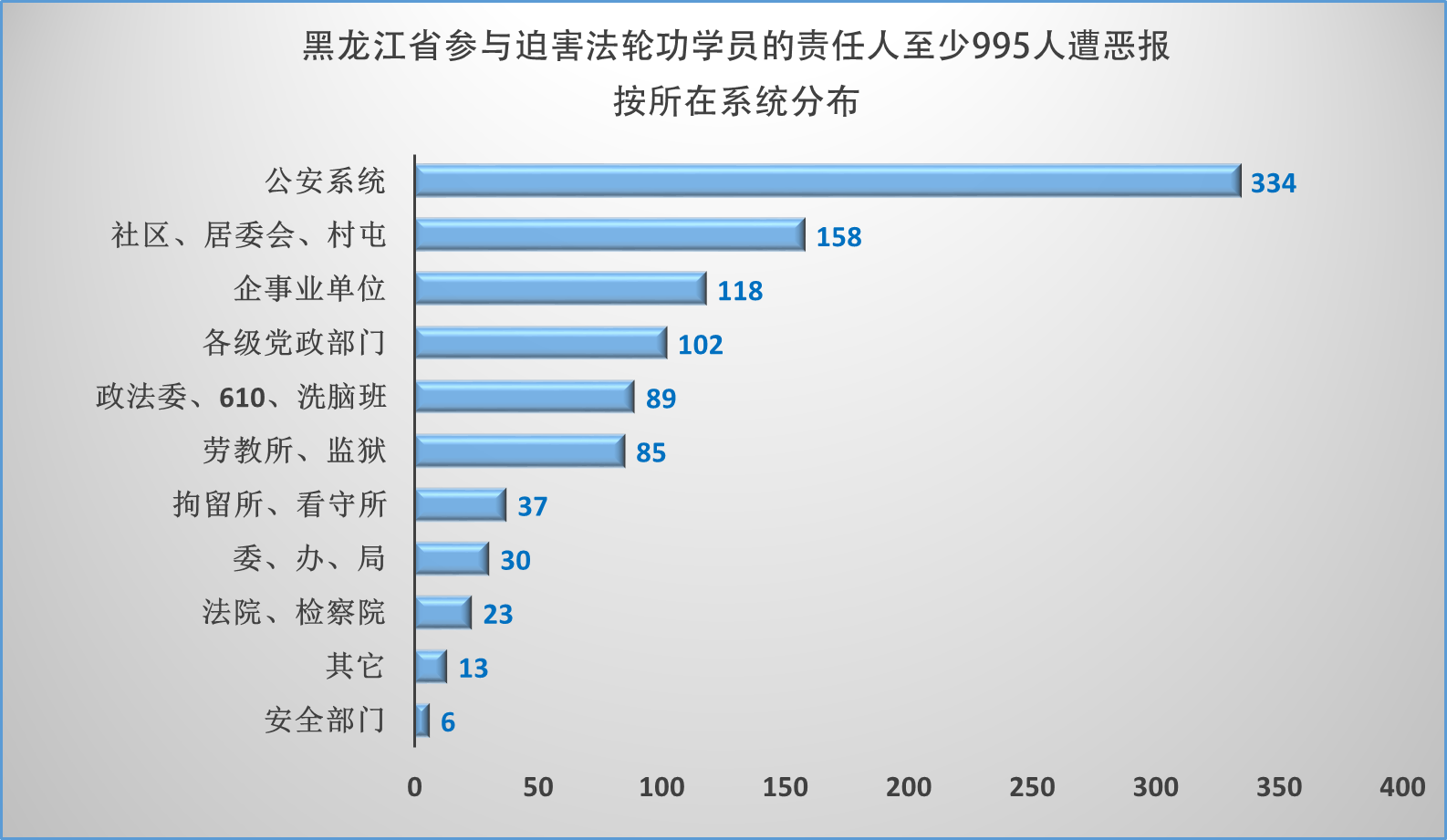 (三)黑龙江省迫害法轮功遭恶报责任人单位按系统分布: