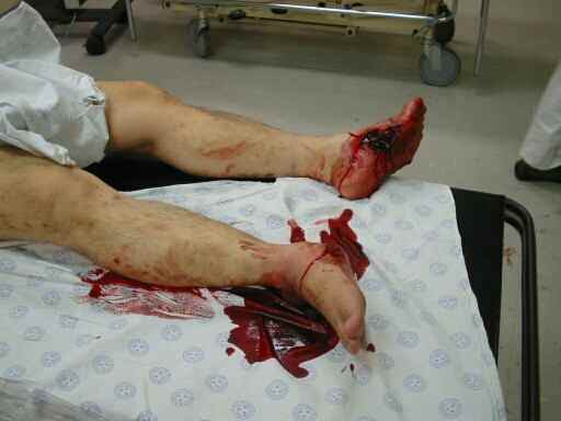 二零零六年二月八日美国法轮功学员李渊在亚特兰大家中遭持枪歹徒袭击,脸上缝了十五针