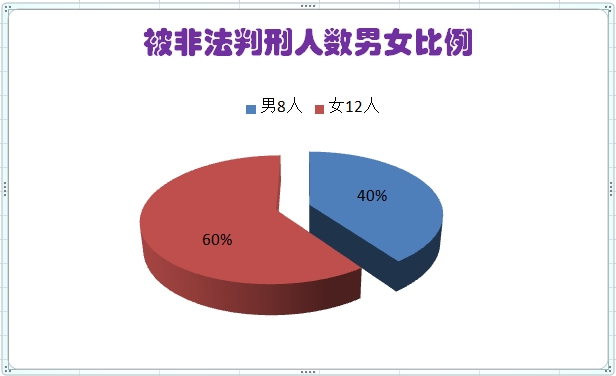 二零一四年下半年大连法轮功学员被非法判刑人数二十人,男女比例: