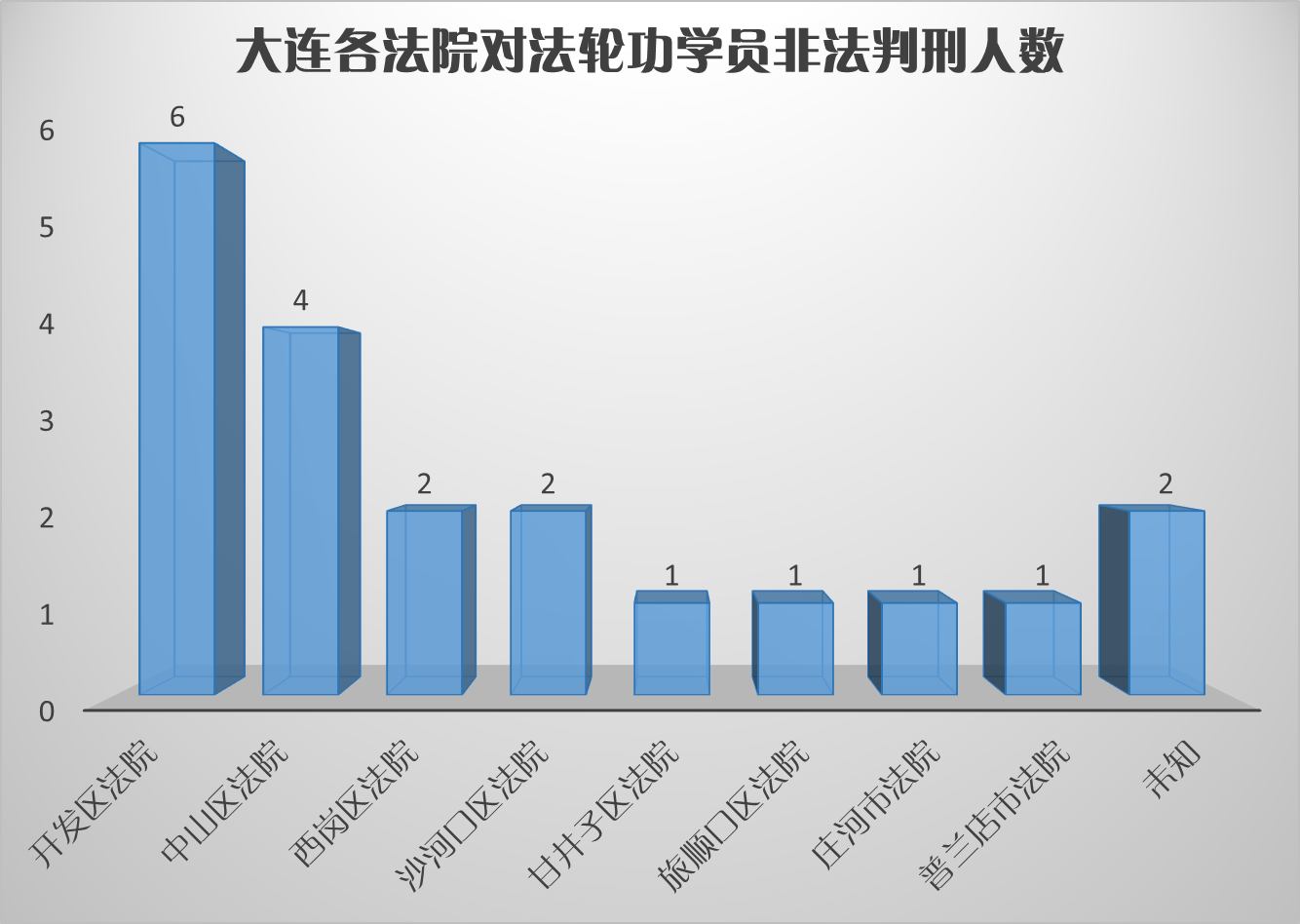 二零一四年一至十二月,大连累计四十一名法轮功学员被非法判刑。其中,七至十二月份,二十人被判刑,十一人被批捕(庭审)。