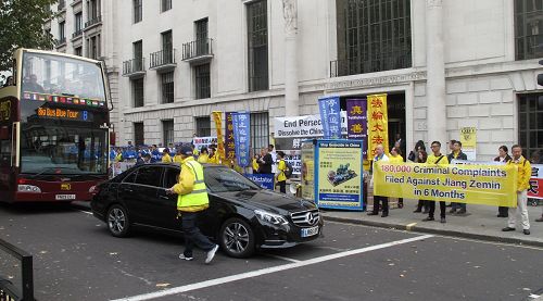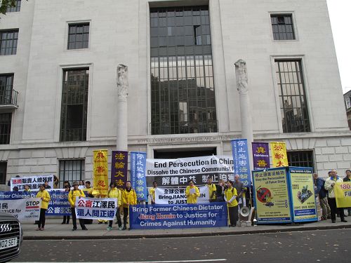 【明慧网二零一五年十月十二日】(明慧记者唐秀明英国伦敦采访报导)二零一五年十月十日,法轮功学员在英国伦敦举办了以“广传真相、声援诉江、解体中共、制止迫害”为主题的大规模集会游行,声援控告江泽民大潮,揭露江泽民和中共迫害法轮功罪行及其有关谎言、呼唤各国政府和广大民众在了解真相基础上辨明善恶并做出正义选择,支持法轮功学员反迫害、法办迫害元凶。