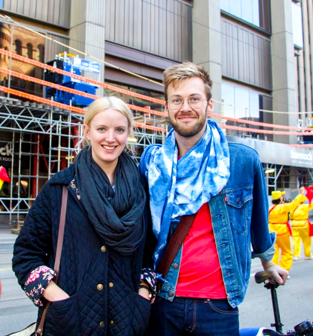 图14:来自美国的David和俄国的Marina观看了游行的全程,他们表示要让更多的人知道和参与诉江,尽快结束这场迫害。