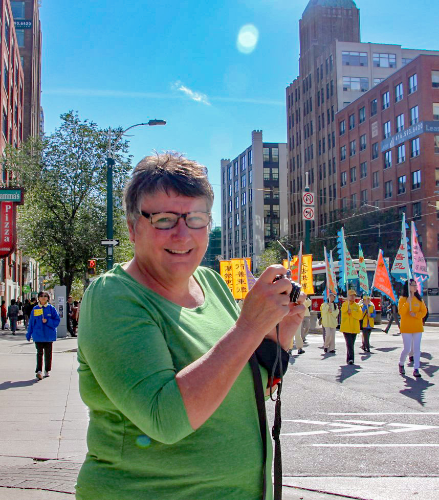 来自于美国亚利桑那州立大学的教授Sugey Bega女士周末来多伦多参加“美国研究”学术会议,当看到游行队伍时,Bega教授说:“我听说过法轮功及法轮功学员在中国遭受的迫害,我觉得这个迫害明显的是不公平的,通过抗议游行这种方式来表达他们想说的话的方式很精彩!我们应该给中共施加压力来制止这场迫害。”