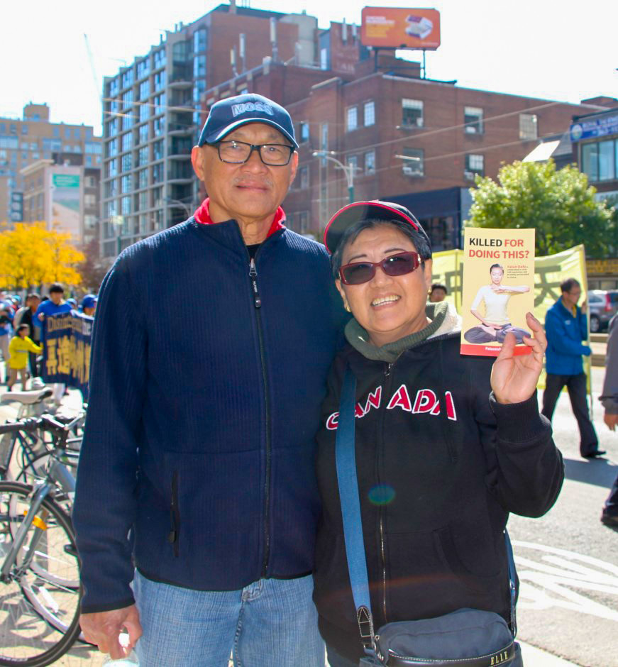 来自印度尼西亚的Irene和先生一起观看了游行,她说:“我们在多伦多已经十几年了,法轮功受迫害的真相我们都知道,我的英文不是很好,我不知道怎么表述,但我们是从心里支持法轮功反迫害的。十六年的迫害太久了,要停止了。”讲完她的眼眶红了。