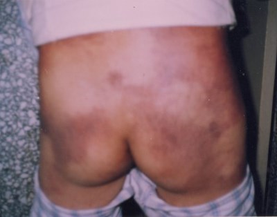 当时正是大夏天,我只穿背心和短裤,双手背铐无法动弹,面朝下扔在地上,脸上身上沾满了土。俩国保也不理会我脚上和身上拖拽蹭的伤、还在流血,将我强行塞进汽车里,送廊坊市中医院强制灌食。