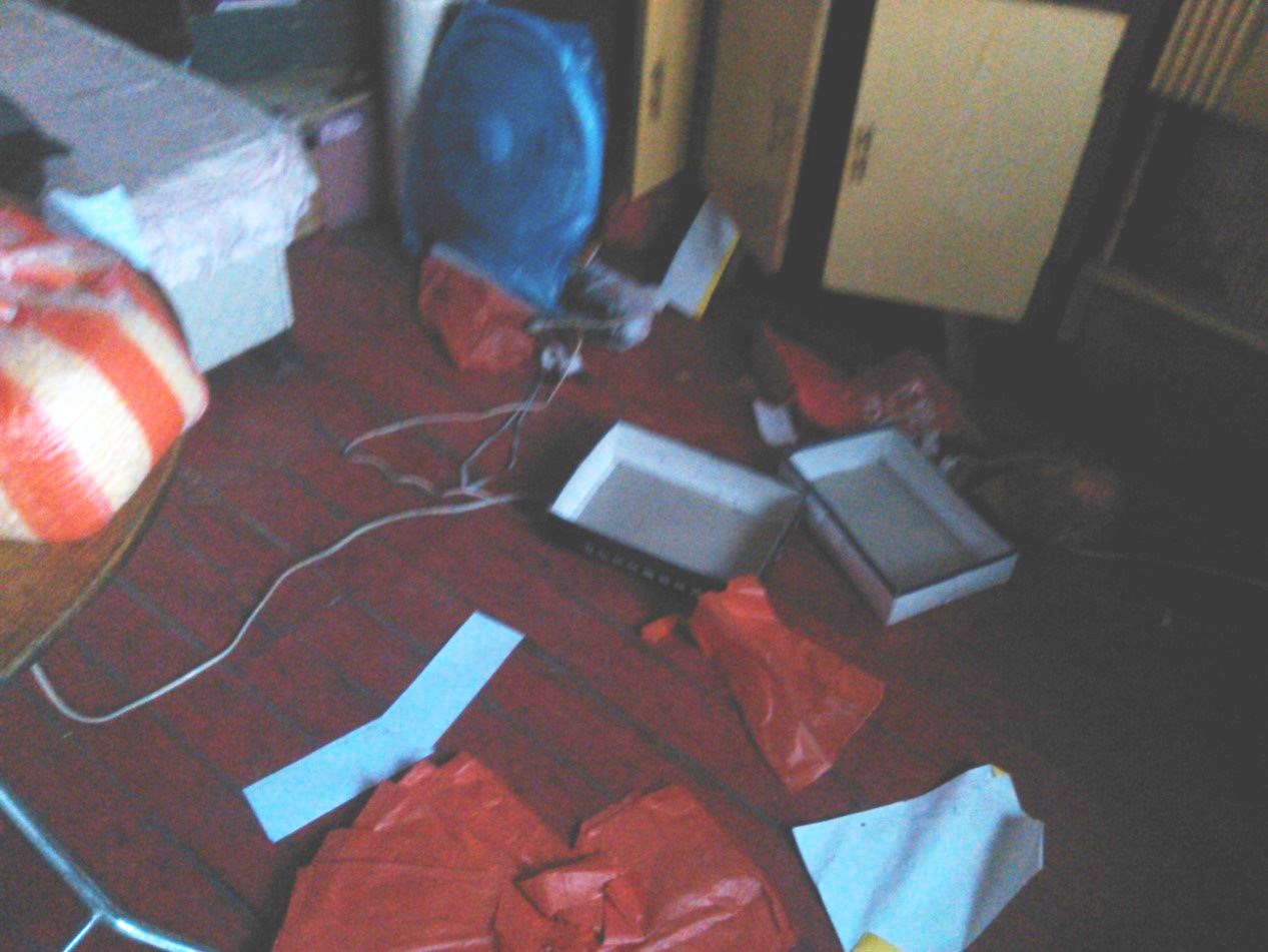 然后警察强行抄家,在家中无人的情况下,拿走两台笔记本电脑、切刀、自用的智能手机和两部智能真相手机、一台激光打印机和一台喷墨打印机以及所有大法书和师父法像、台历和真相资料等。人民币有多少现无法核实。