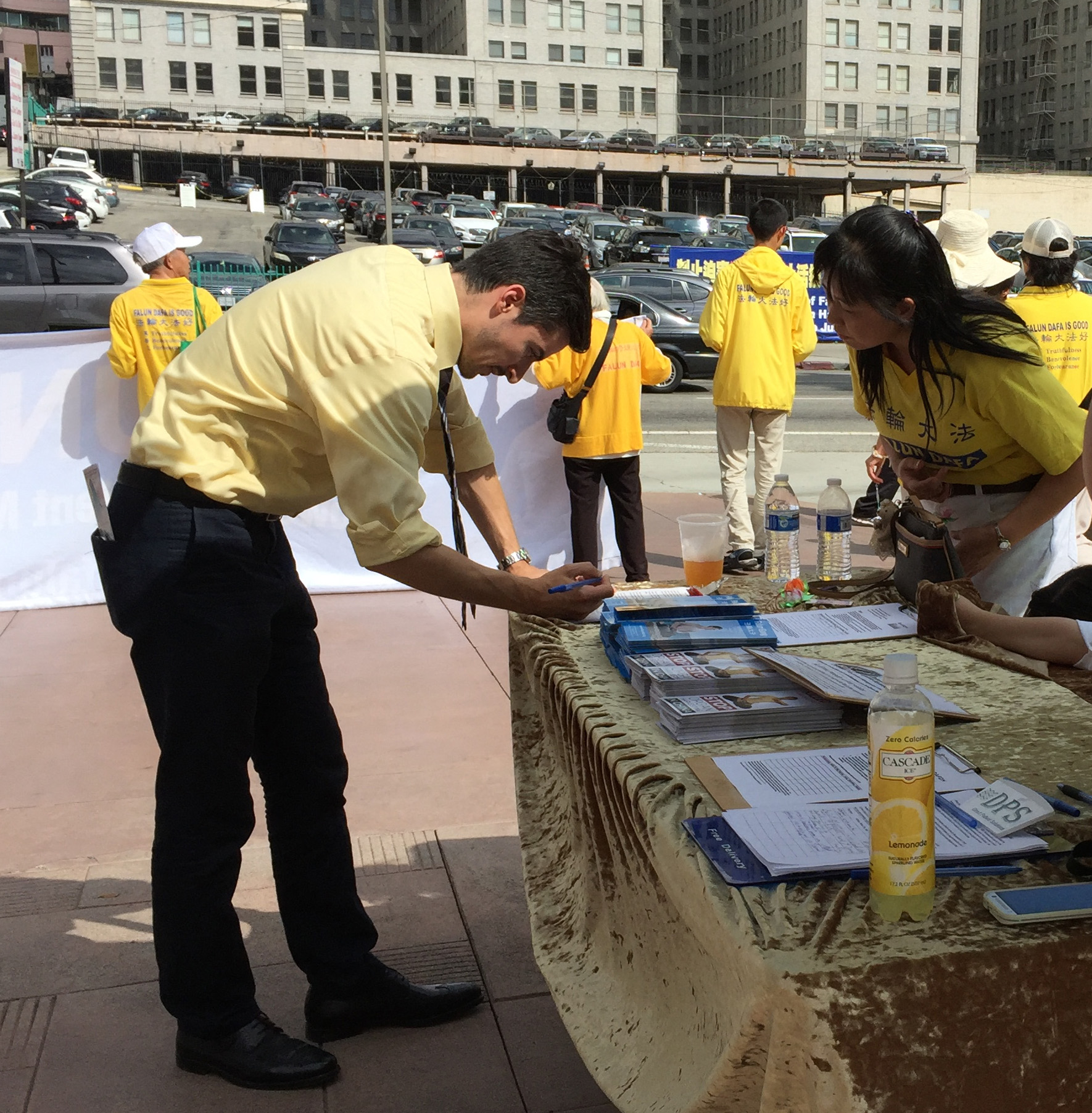 在潘兴公园附近从事金融工作的约翰‧帕帕斯(John Papas)在了解活摘罪行后,郑重在两份表格上签名:一份是给联合国的,一份是给美国国会的,呼吁他们帮助制止活摘器官、制止迫害。