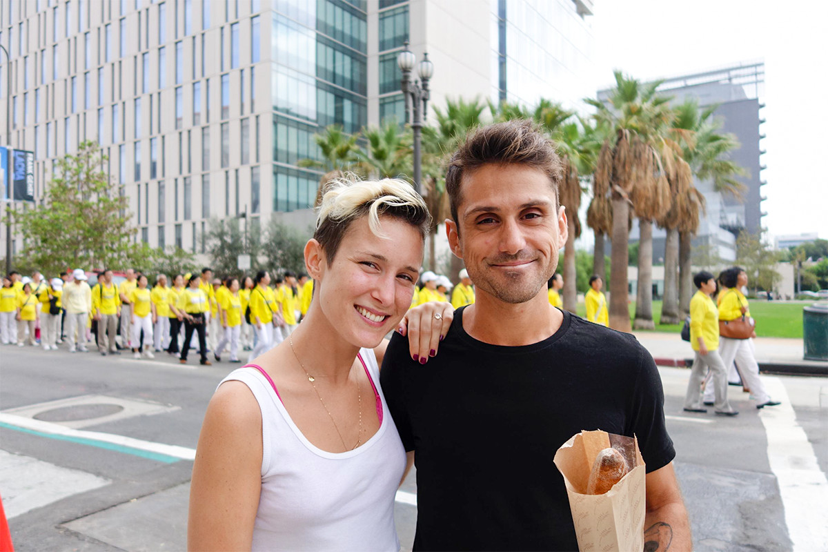 来自中国农村的上官夫妇,来美国后才开始学炼法轮功,学炼后感觉很精神,他表示今天的活动很成功,觉的很高兴。另一对来自中国大陆的朱姓夫妻,与儿子从纽约来到洛杉矶,朱先生表示法轮功游行很盛大, 与国内宣传的完全不一样,他所认识的法轮功学员都是很好的人,不该受到这样的残酷迫害。