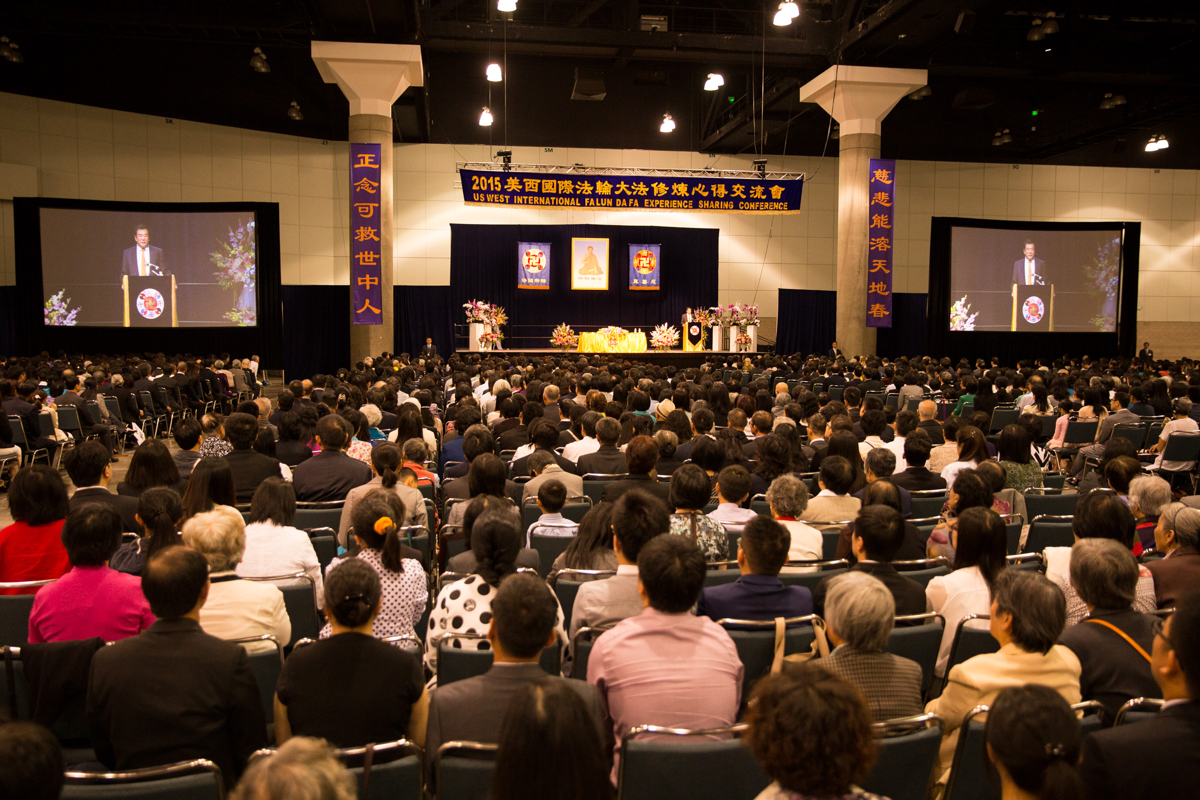 ![]() 图3-6:二零一五年美西国际法会上,中西方法轮功学员分享修炼心得 |