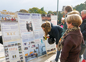 和往常的星期日一样,十月十八日星期日下午,法轮功学员来到巴黎艾菲尔铁塔下的人权广场举行讲真相活动。
