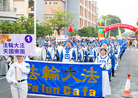 台湾高雄大冈山地区举办“妈祖文化节 螺艺嘉年华”系列活动。主办单位特别邀请法轮功天国乐团当前导引领,成为这次活动的聚焦点。