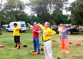 - 墨尔本学员在多元文化节传真相(图)- 十月二十五、二十六日,墨尔本法轮功学员参加了首届多元文化全球村节,并展示功法,向游客介绍法轮功功法,以及中共迫害好人的真相。