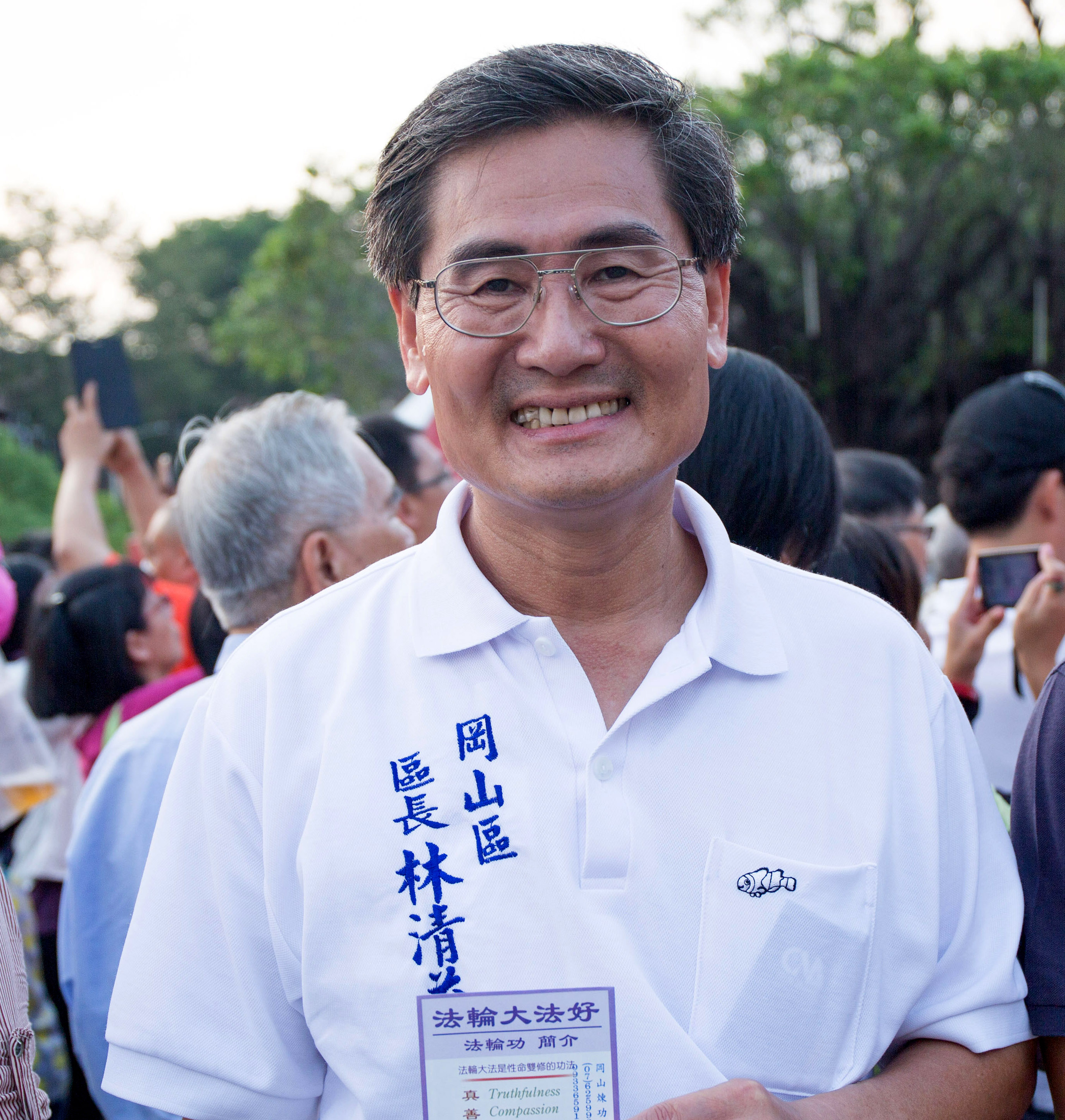 高雄冈山区行政首长林清益表示,法轮功学员精神令人敬佩。