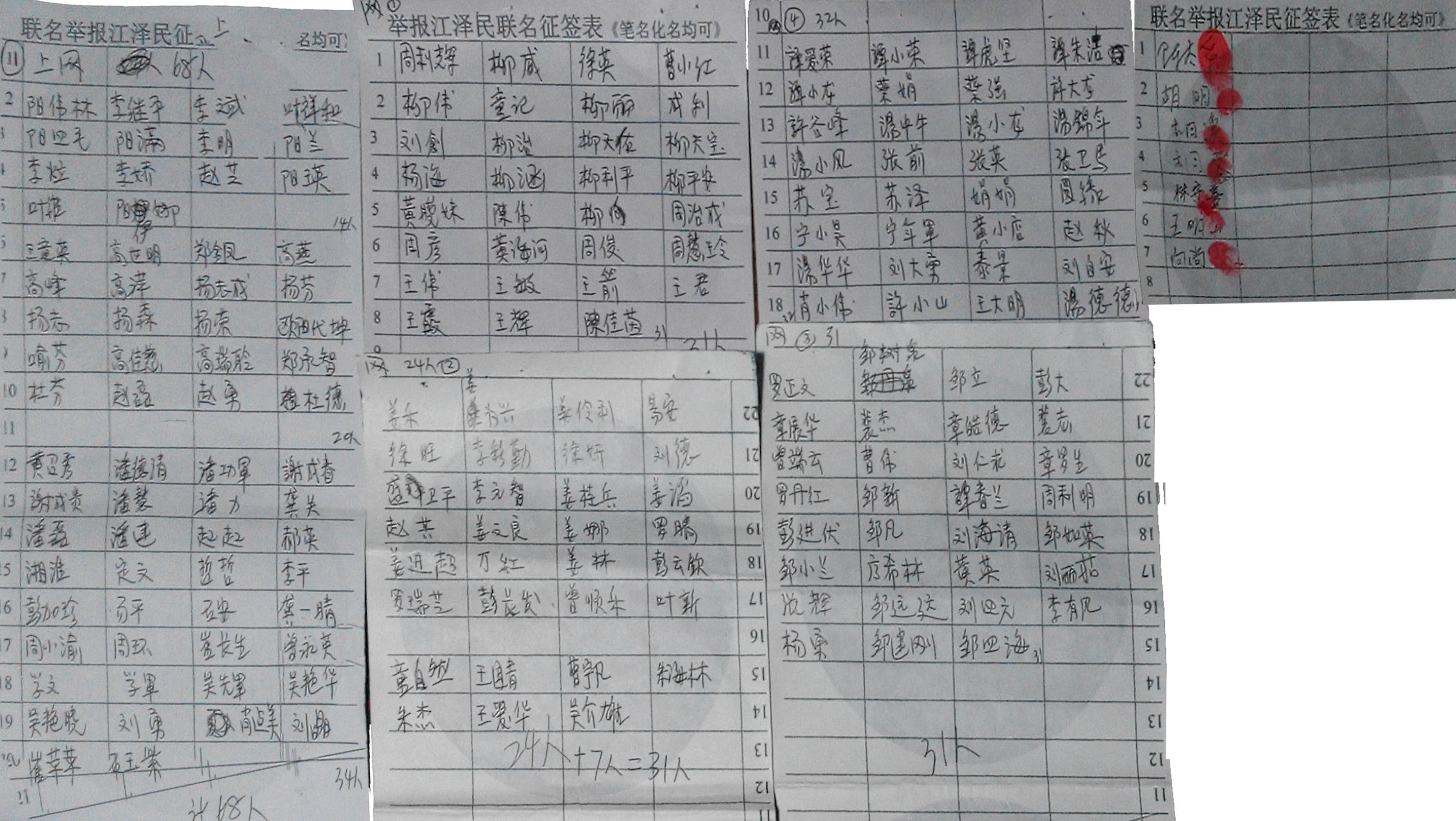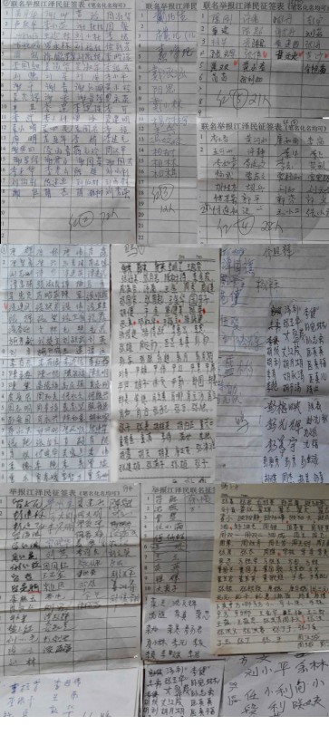 湖南长沙善良民众签名举报江泽民的部分图例
