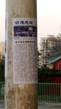 2015年10月1日,内蒙古呼和浩特市大昭寺、观音寺景点,内大创业学院南墙,第一看守所附近,大街小巷出现大量诉江不干贴(明慧周报),告诉人们真相。