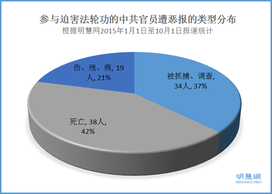 本文从明慧网资料中整理了2015年1月至10月中共官员迫害法轮功遭恶报的案例,无论当事人遭到什么样的恶报,都与他们迫害法轮功有关。