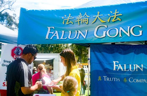 市民 Joddy Goddard 看到法轮功学员摆放真相信息的摊位赶忙过来签名,她说她看过了SBS电视台播放的《活摘》 (Human Harvest)纪录片,内心受到巨大的震动,又去了解了一些法轮功的真相,现在非常想学炼法轮功。她拿了学炼功法的传单,询问了炼功点的地理位置,记下当地一名学员的联系电话,并说:“我真的需要学炼(I really need to do it)。”另一市民 Darren Gash 也是直接来找学员要炼功点的信息。