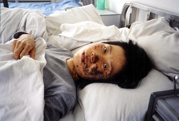 高蓉蓉二零零四年五月七日被酷刑折磨,脸上是电烧灼伤。照片是受伤10天后拍摄的。